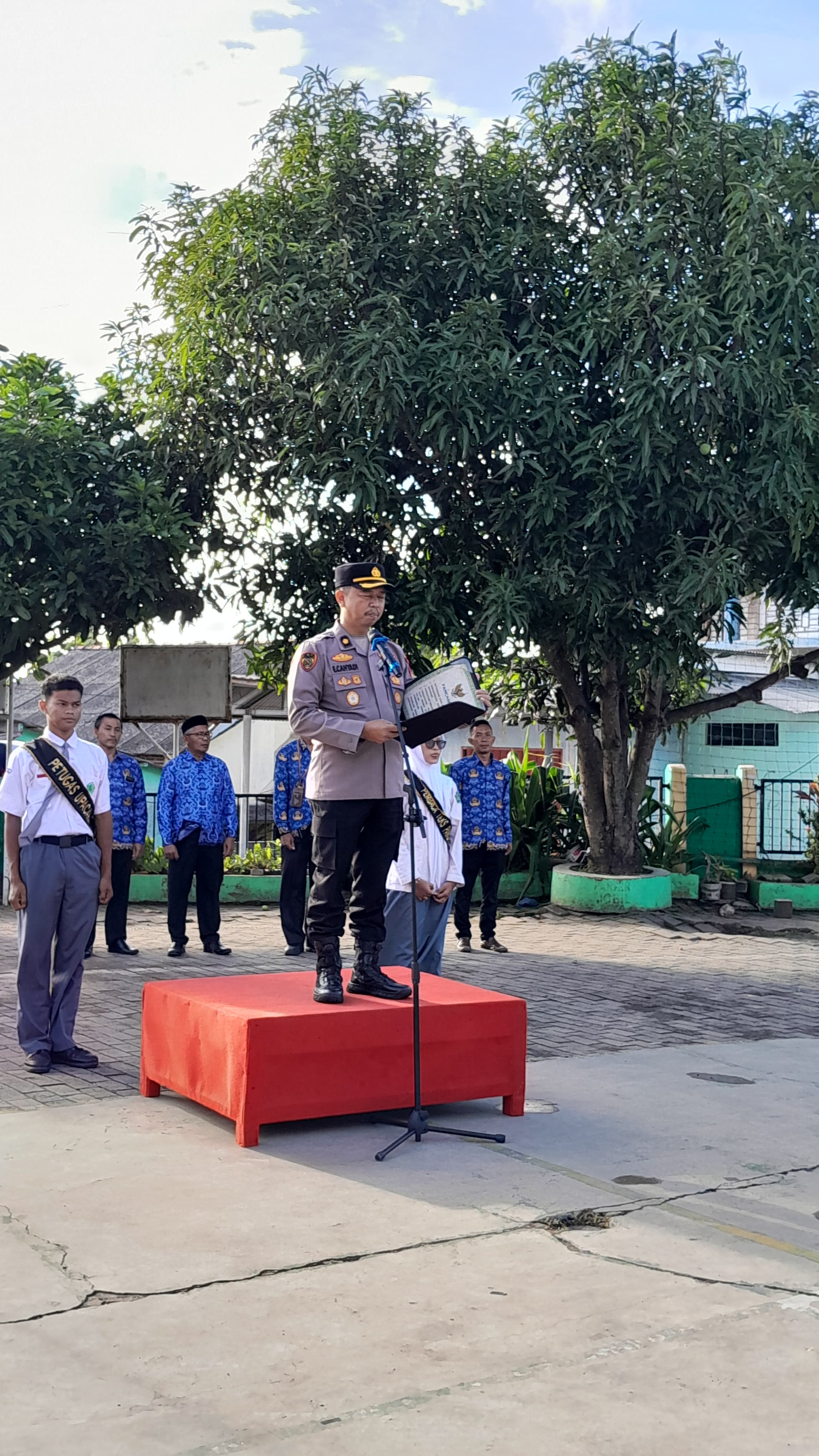 Cilegon – Bhabinkamtibmas Polsek Ciwandan Dampingi Kabag SDM Polres Cilegon Polda Banten KOMPOL Entang Cahyadi Pimpin Upacara Dan Menyambangi MAN 1 Kota Cilegon Dikelurahan Lebak Denok Kecamatan Citangkil, Menyampaikan Pesan-pesan Kamtibmas Dan Memberikan Imbauan, Selasa (18/11/2025).