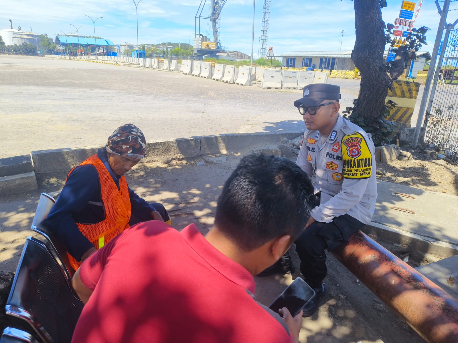 Jalin Silaturahmi, Bhabinkamtibmas Pelabuhan Polsek KP Banten berbincang ke Buruh Pelabuhan