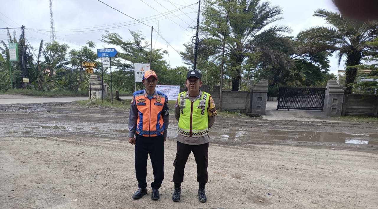 Demi Kelancaran dan Kenyamanan Pengguna Jalan, Bhabinkamtibmas dan Dishub Laksanakan Gatur Lalu lintas Sore Hari Di Jalan Raya PT MSJ Bojonegara