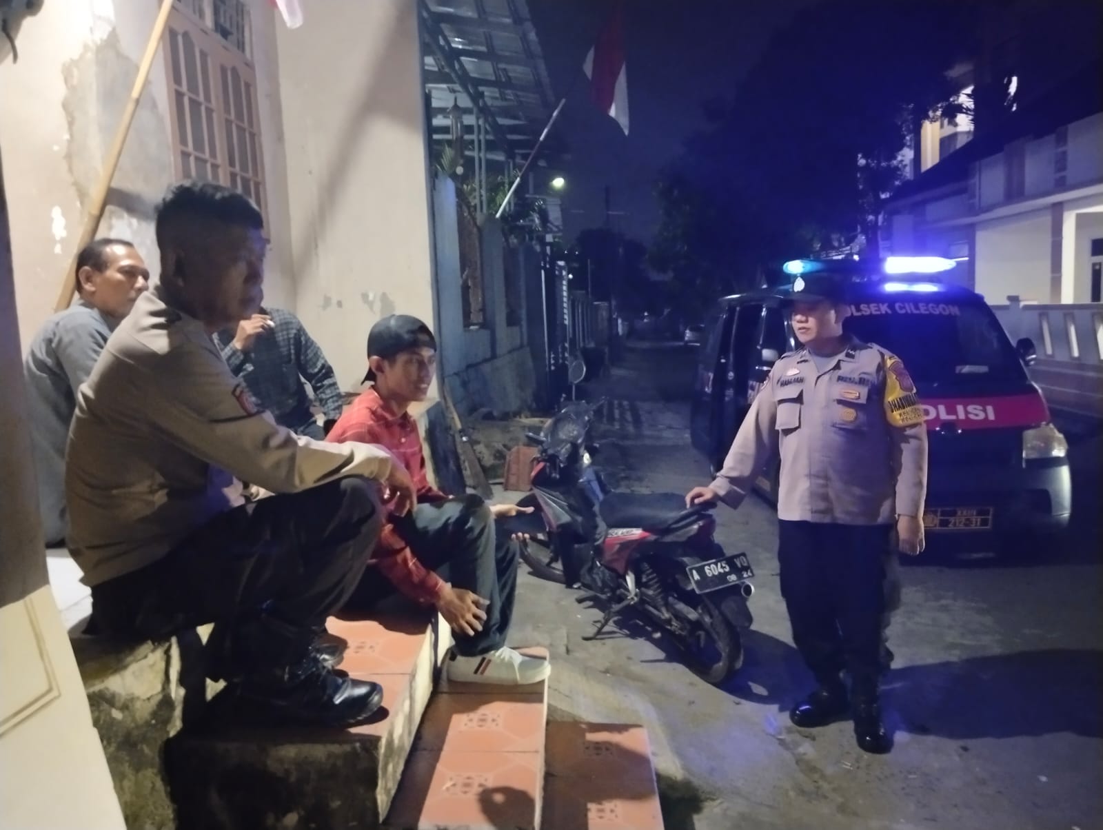 Anggota unit patroli samapta Polsek Cilegon sambang kepada warga jalin keakraban jalin keamanan
