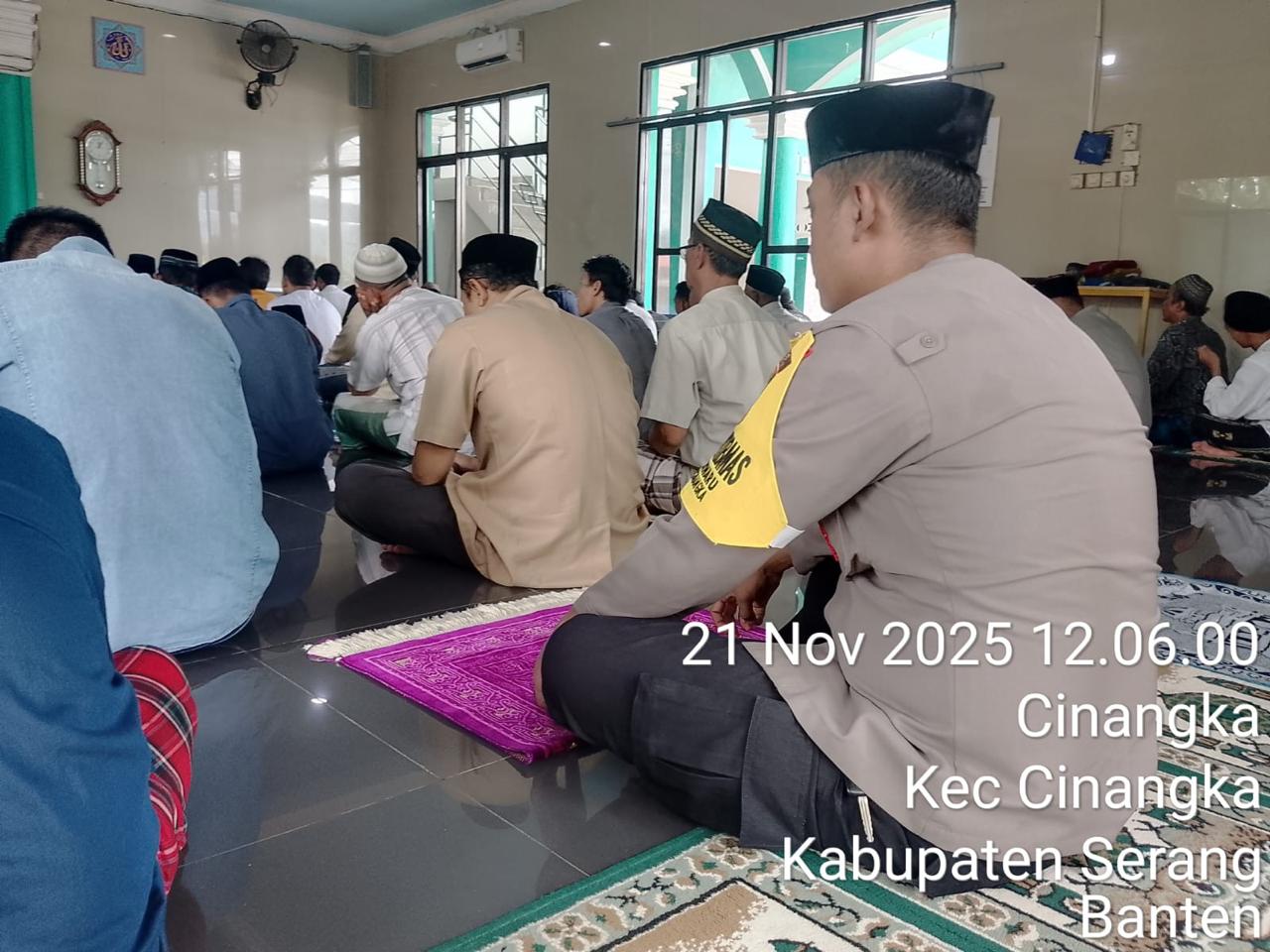 *POLRES CILEGON* - Kapolsek Cinangka Polres Cilegon Polda Banten dan Jajaran melaksanakan giat Juma't keliling dalam rangka silaturahmi menjalin kemitaraan dan menjaga Harkamtibmas di Desa Binaannya sebagai bentuk mendukung Program Quick Wins Presisi Polri, Jumat (21/11/2025).