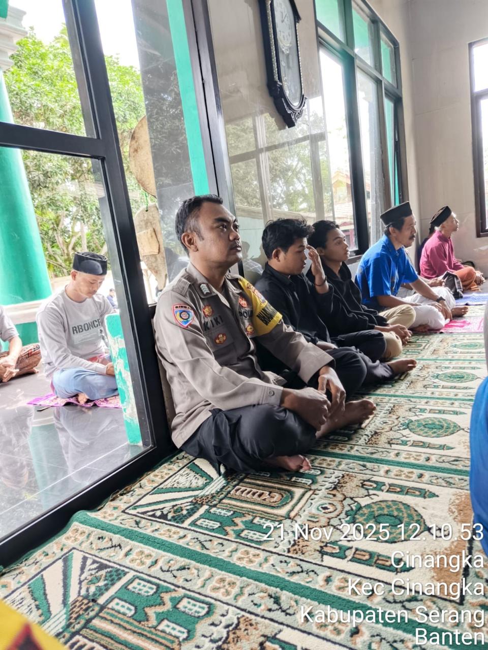 *POLRES CILEGON* - Kapolsek Cinangka Polres Cilegon Polda Banten dan Jajaran melaksanakan giat Juma't keliling dalam rangka silaturahmi menjalin kemitaraan dan menjaga Harkamtibmas di Desa Binaannya sebagai bentuk mendukung Program Quick Wins Presisi Polri, Jumat (21/11/2025).