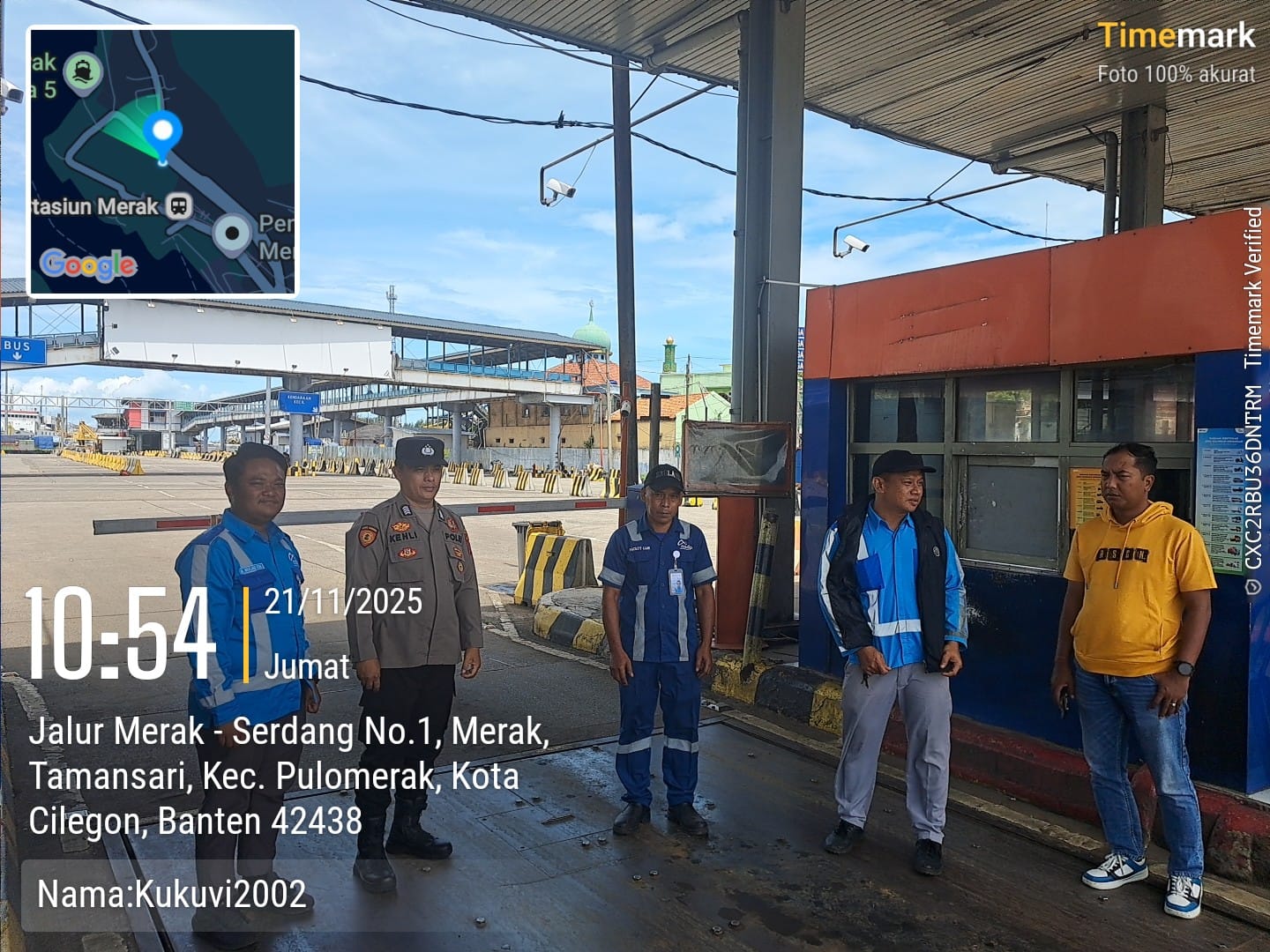 Cilegon - Personel Polsek Kskp Merak Polres Cilegon Polda Banten melaksanakan sambang dan patroli kawasan pelabuhan merak dalam rangka menjaga Harkamtibmas di Kawasan Pelabuhan Merak, Jumat (21/11/2025).