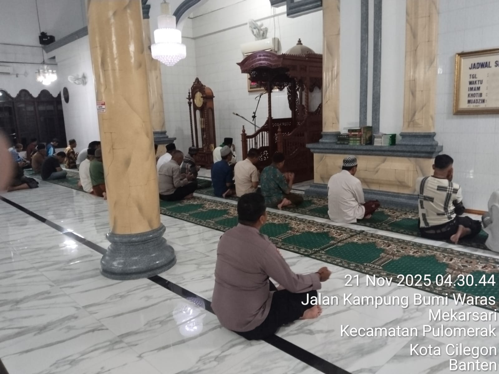 “Dalam kegiatan tersebut, Personil Polsek Kp Polres Cilegon Polda Banten turut berbaur dengan jemaah masjid dalam melaksanakan shalat subuh berjamaah. Setelah itu, dilakukan dialog interaktif antara petugas kepolisian dan masyarakat untuk mendengarkan aspirasi serta memperoleh masukan terkait dengan situasi keamanan dan ketertiban di lingkungan sekitar,” tambah Kapolsek.