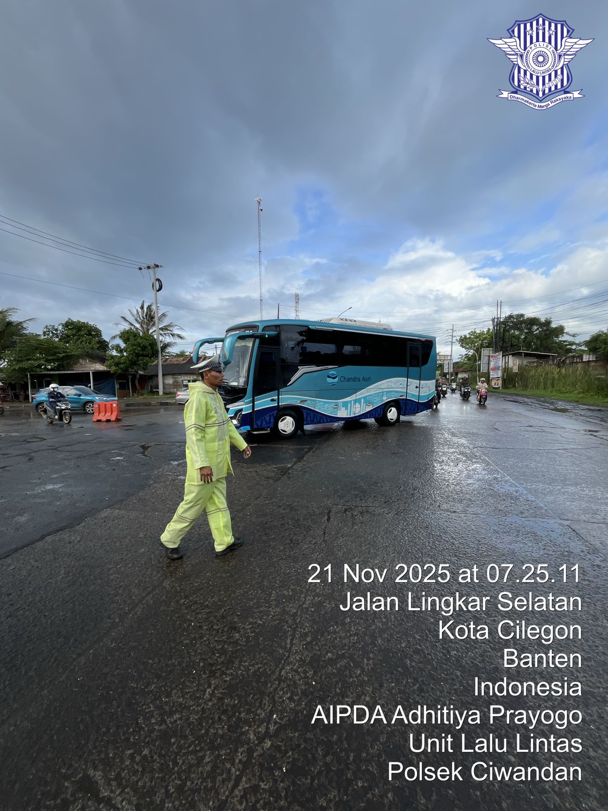 Cilegon - Pelayanan Prima Kepolisian Kepada Warga Masyarakat dan Guna menciptakan situasi lalu lintas yang aman, tertib dan lancar, Personel Unit Lantas Polsek Ciwandan Polres Cilegon Polda Banten secara rutin melaksanakan pengaturan lalu lintas, Jum'at (21/11/2025).