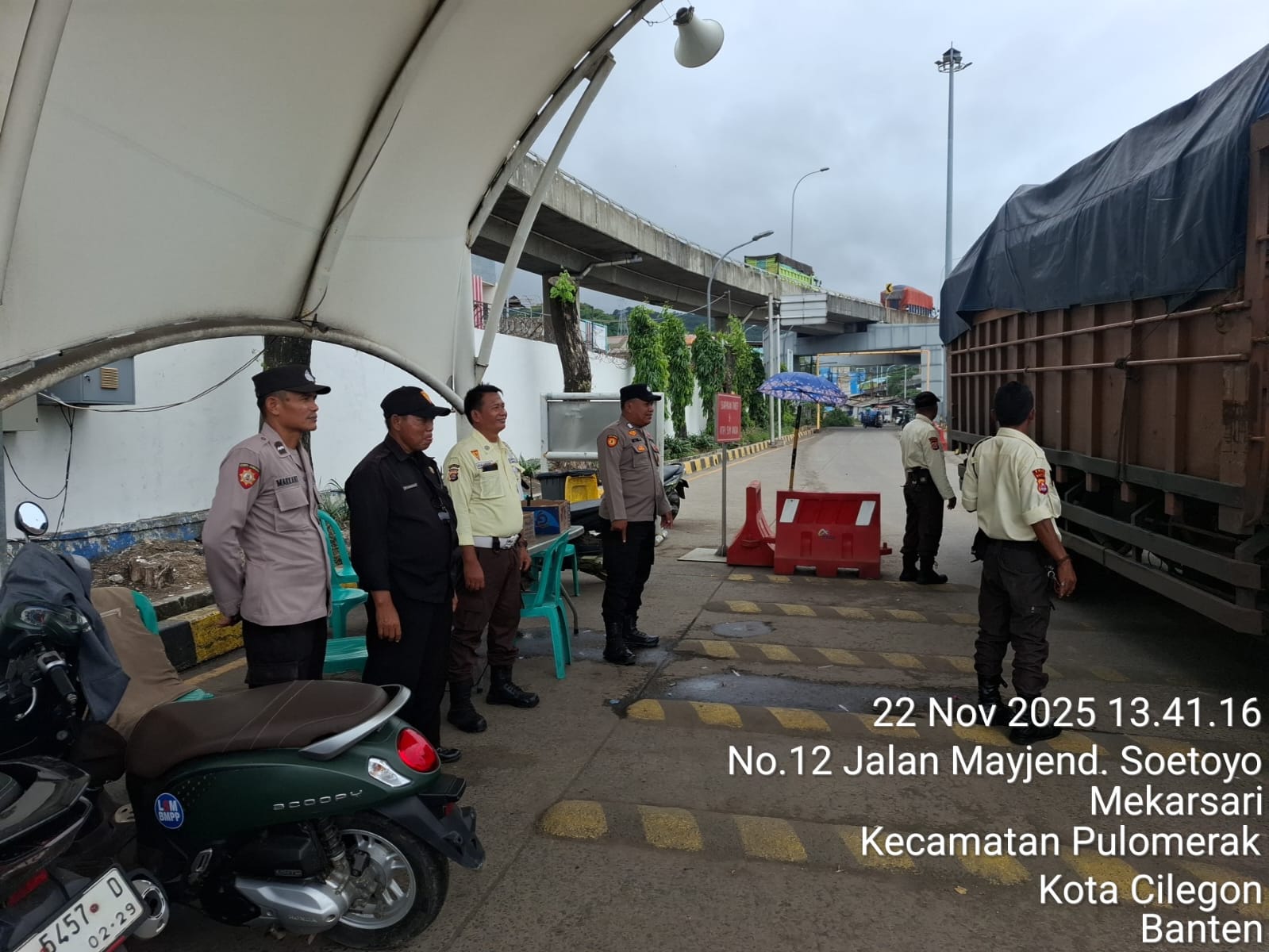 Cilegon - Personel Polsek Kskp Merak Polres Cilegon Polda Banten melaksanakan sambang dan patroli kawasan pelabuhan merak dalam rangka menjaga Harkamtibmas di Kawasan Pelabuhan Merak, Sabtu (22/11/2025).