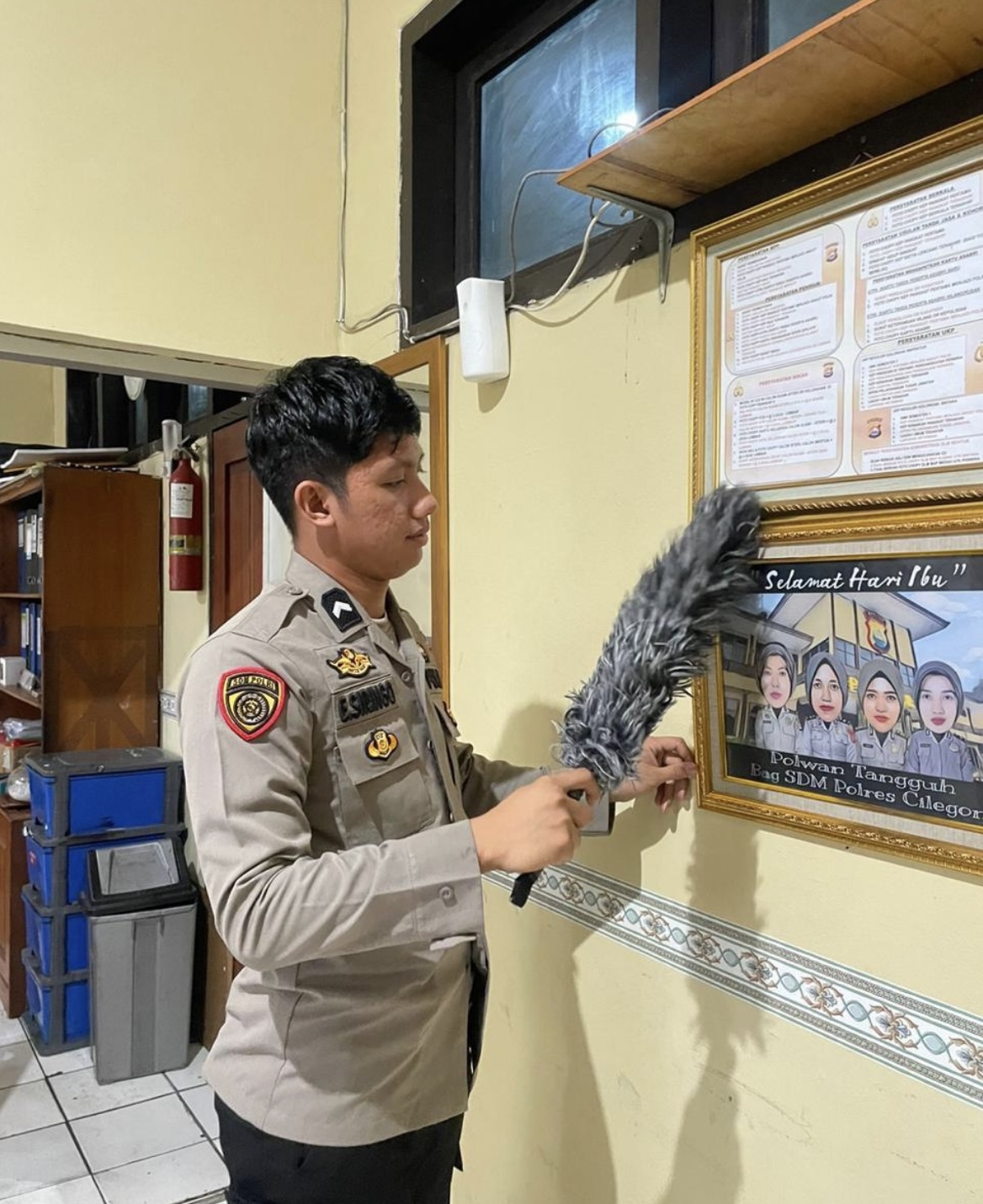 Anggota Bag SDM Polres Cilegon, Akttif dalam rutinitas membersihkan ruangan kerja setiap hari