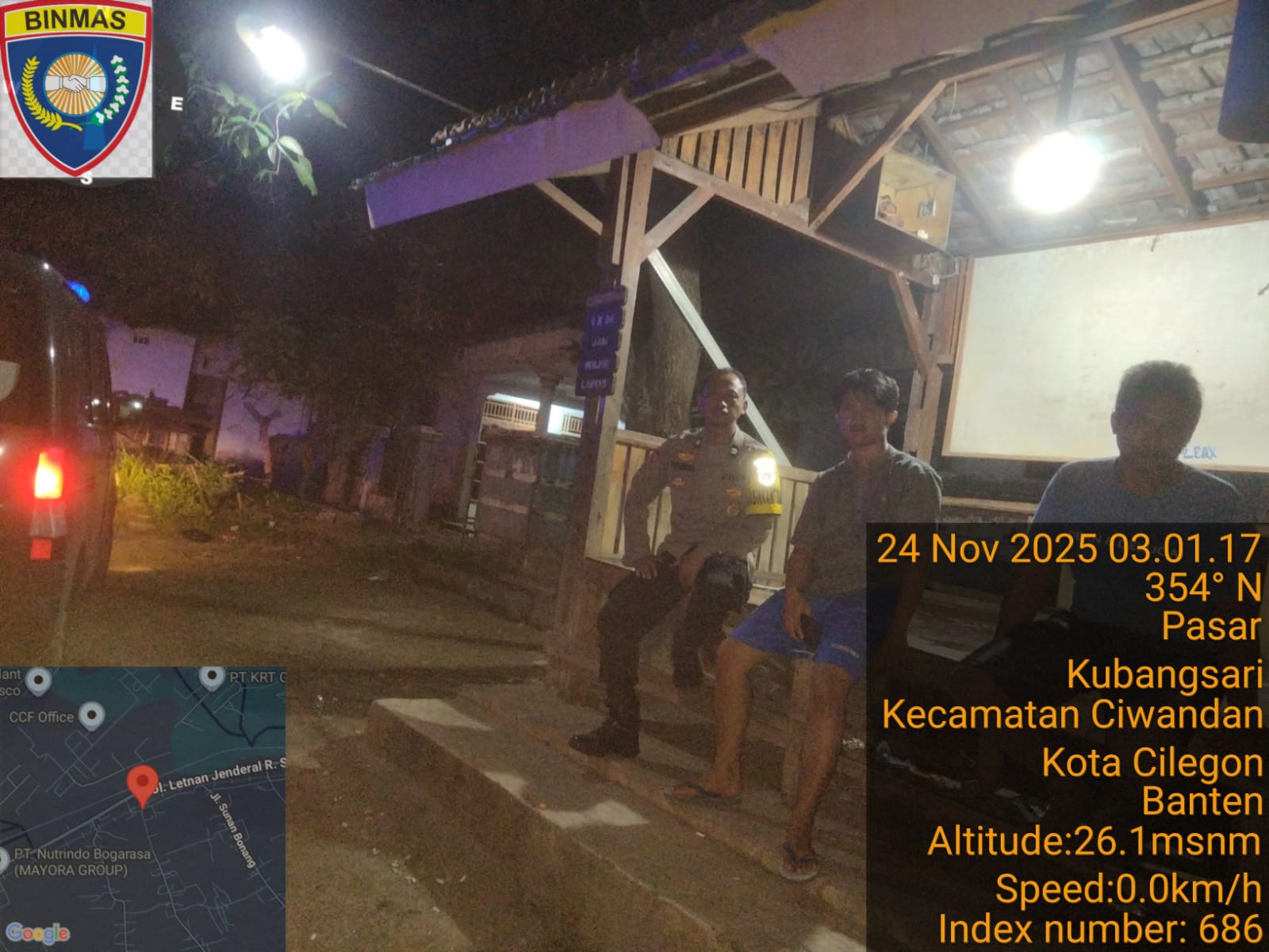 Kapolres Cilegon Polda Banten AKBP Dr. Martua Raja Taripar Laut Silitonga Melalui Kapolsek Ciwandan Polres Cilegon Polda Banten KOMPOL Andi Suherman Mengatakan bahwa setiap malam Personil Polsek Ciwandan Polres Cilegon Polda Banten menggelar patroli dengan menyasar daerah rawan dan Pada Jam Yang Dianggap Rawan, Hal tersebut dilakukan untuk mencegah terjadinya gangguan kamtibmas seperti kejahatan jalanan jambret ataupun curanmor.