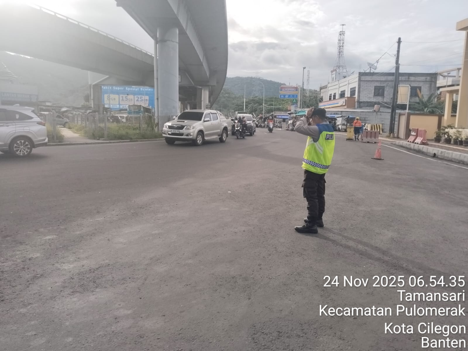 Polsek KSKP Merak Optimalkan Pengaturan Kendaraan Demi Kelancaran Penyeberangan