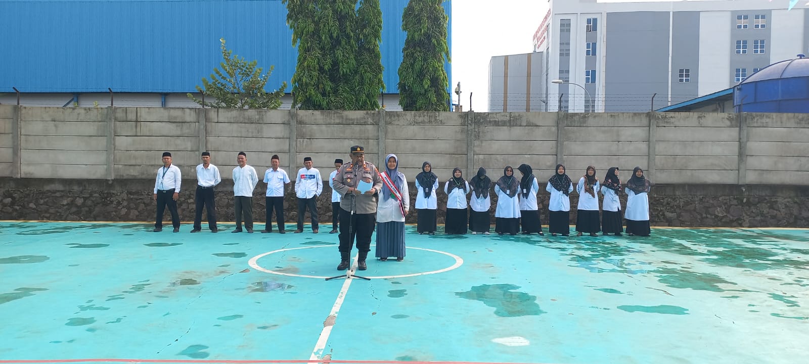 Cilegon – Bhabinkamtibmas Polsek Ciwandan Dampingi Kasat Binmas Polres Cilegon Polda Banten IPTU Muhyidin Pimpin Upacara Dan Menyambangi MTS & MA Dikelurahan Tegalratu Kecamatan Ciwandan, Menyampaikan Pesan-pesan Kamtibmas Dan Memberikan Imbauan, Senin (24/11/2025).