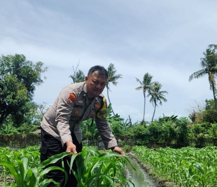 Bhayangkara Pembina Keamanan dan Ketertiban Masyarakat (Babinkamtibmas) Aiptu Daryo.E aktif mendampingi petani jagung di lingkungan Daliran, Kelurahan Kebondalem, Kecamatan Purwakarta, Kota Cilegon