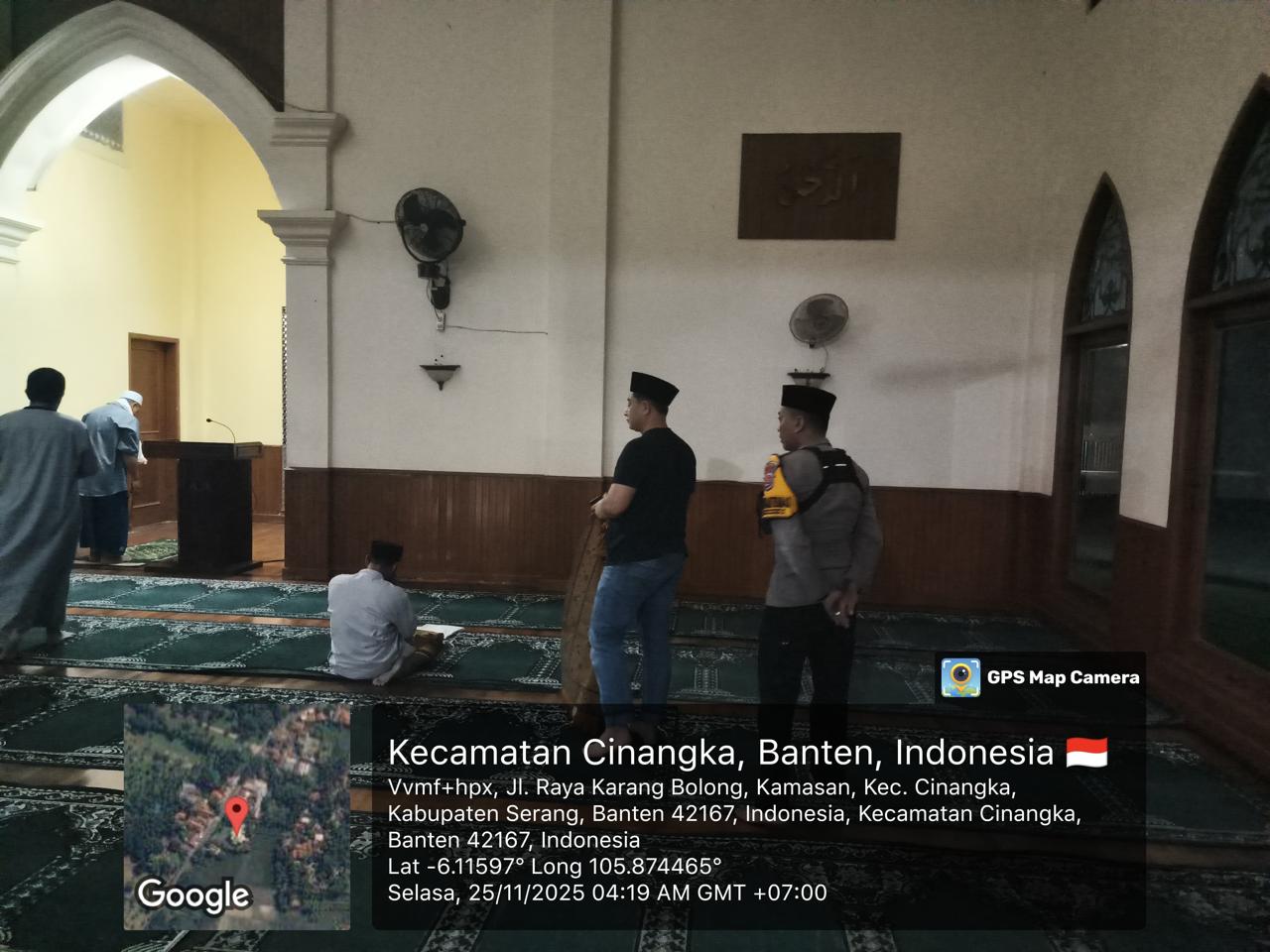 Dalam kunjungannya Bhabinkamtibmas Polsek Cinangka Polres Cilegon Polda Banten melaksanakan Subuh keliling di Masjid sekitar Cinangka Desa. Pasauran serta untuk silahturahmi dakam menciptakan kondisi yang aman bersama, masyarakat.Tutup Kapolsek Cinangka.