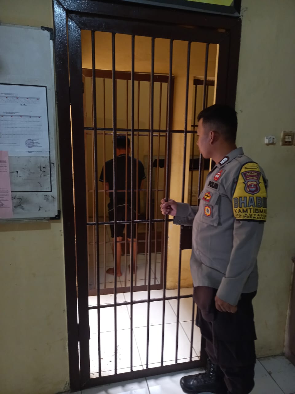GI PENGECEKAN TAHANAN SECARA RUTIN DILAKUKAN PERSONIL POLSEK PURWAKARTA UNTUK MEMASTIKAN TAHANAN DALAM KEADAAN AMAN