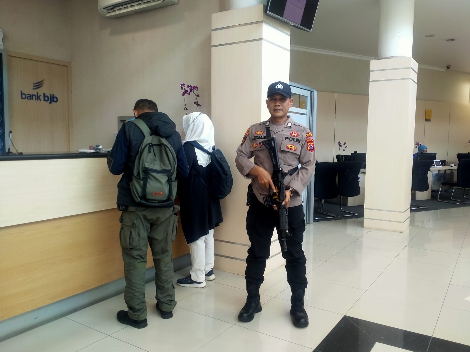 Bripka Ajat,  merupakan anggota Satpamobvit yang ditugaskan untuk menjaga Bank BJB, telah menunjukkan dedikasi tinggi dalam melaksanakan tugasnya. Dengan pengawasan yang cermat dan kesigapan yang tinggi, Bripka Ajat menjaga agar obyek vital ini tetap aman dari berbagai potensi ancaman.