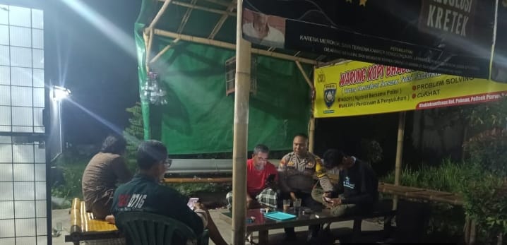 -POLRES CILEGON–Polda Banten. Bhabinkamtibmas Aipda Anton Sudrajat melaksanakan patroli dialogis dengan menyapa warga di warung kopi Bhabinkamtibmas (Warbling) di Lingkungan Karang Tengah Ciputat RT/RW 10/04, Kelurahan Pabean, Kecamatan Purwakarta, Kota Cilegon, Jumat (28/11/2025).