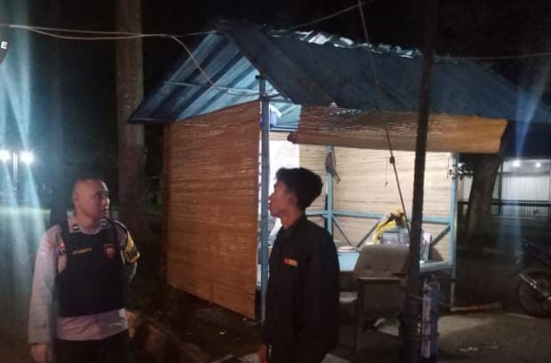Bhabinkamtibmas Bripka Agustoni melaksanakan patroli dialogis dengan menyapa petugas Siskamling/Ronda di Perumahan KS, Kelurahan Kotabumi, Kecamatan Purwakarta, Kota Cilegon