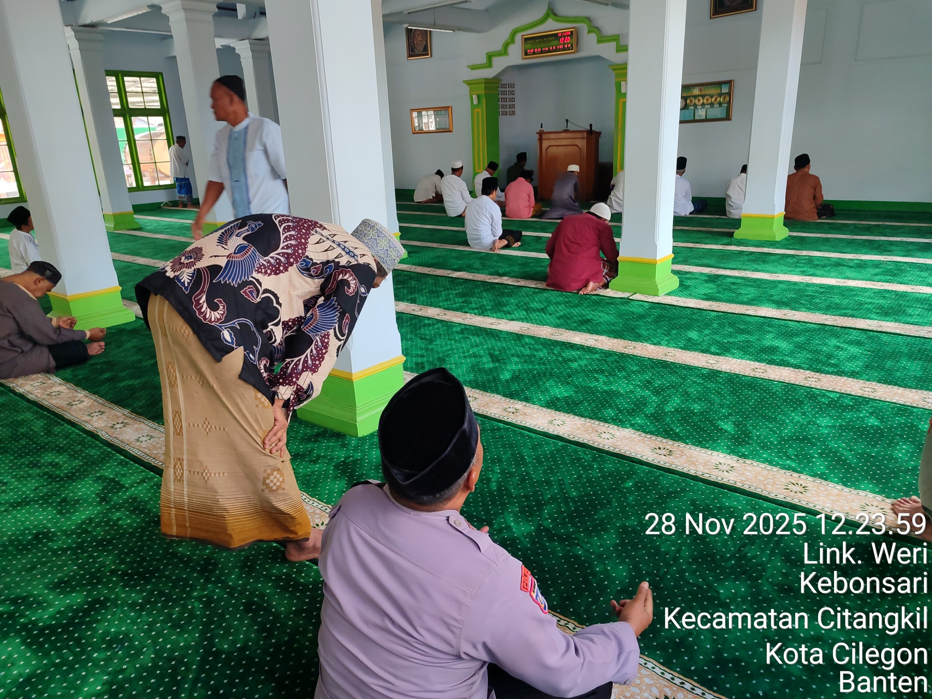 Cilegon - Dalam Rangka Implementasi Program Kapolda Banten Yaitu Sholat Jum’at Keliling Dan Berjama’ah Serta Memakmurkan Masjid Bhabinkamtibmas Polsek Ciwandan Polres Cilegon Polda Banten Sholat Berjama’ah dan Bersilaturahmi Bersama masyarakat sebagai upaya meningkatkan Ukhuwah Islamiyah dalam menjalin silaturahmi dan membangun komunikasi yang baik,Jum’at (28/11/2025).