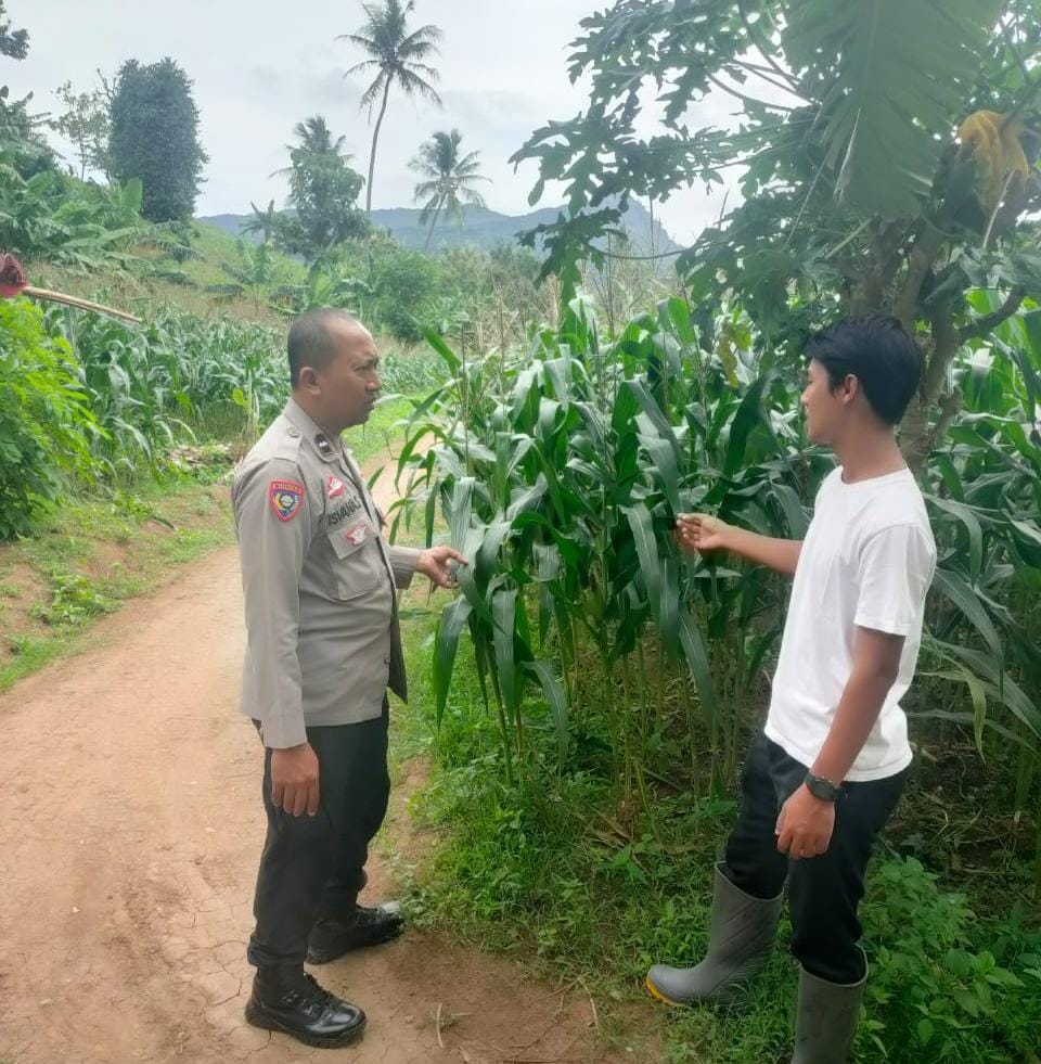 Dalam rangka mendukung program ketahanan pangan nasional dan swasembada pangan Kanit Binmas dan Bhabinkamtibmas Polsek Anyar melaksanakan kegiatan sambang dan monitoring lahan pertanian jagung di Desa Bunihara, Kecamatan Anyar, Kabupaten Serang. Sabtu (29/11)