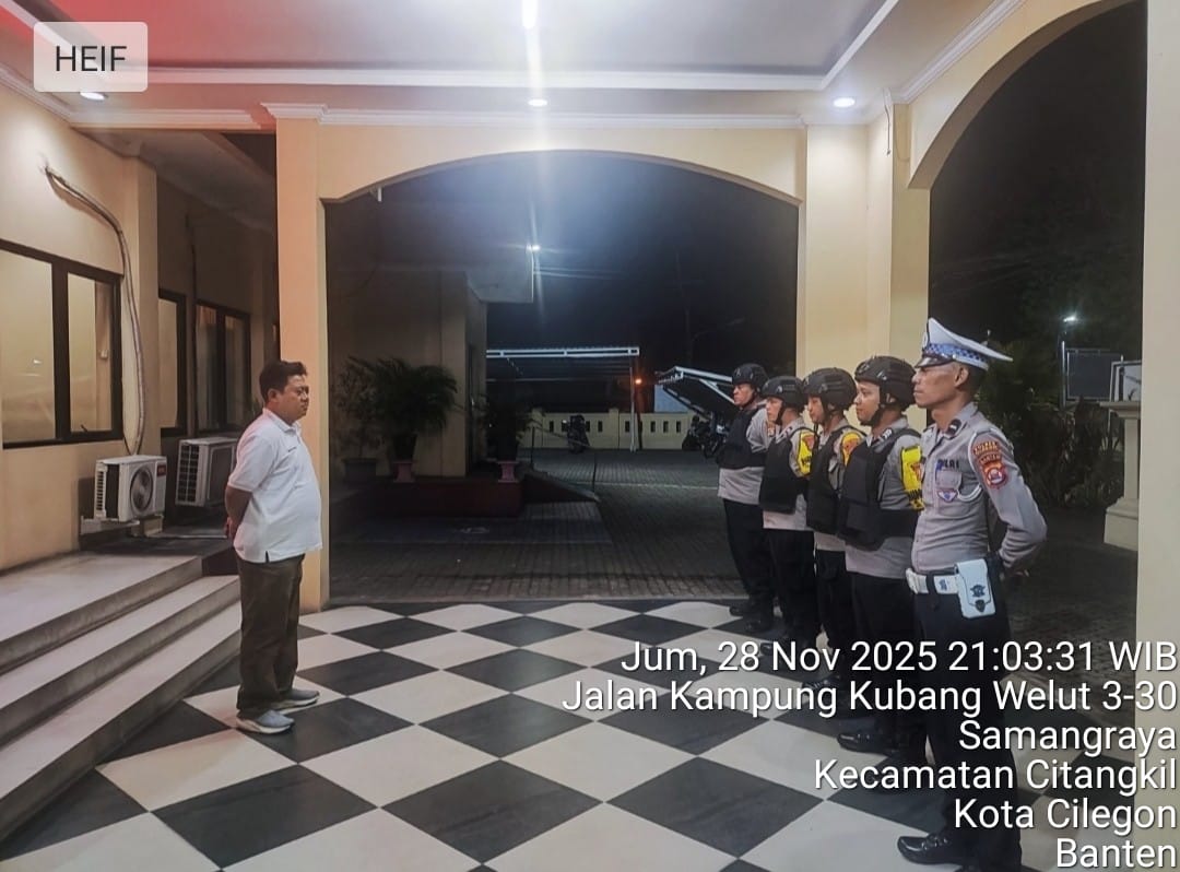 Cilegon - Personil Polsek Ciwandan Polres Cilegon Polda Banten menggelar apel malam Persiapan Patroli yang dipimpin Oleh Pawas Polsek Ciwandan Yang Bertugas Pada Hari Itu, Sabtu (29/11/2025)