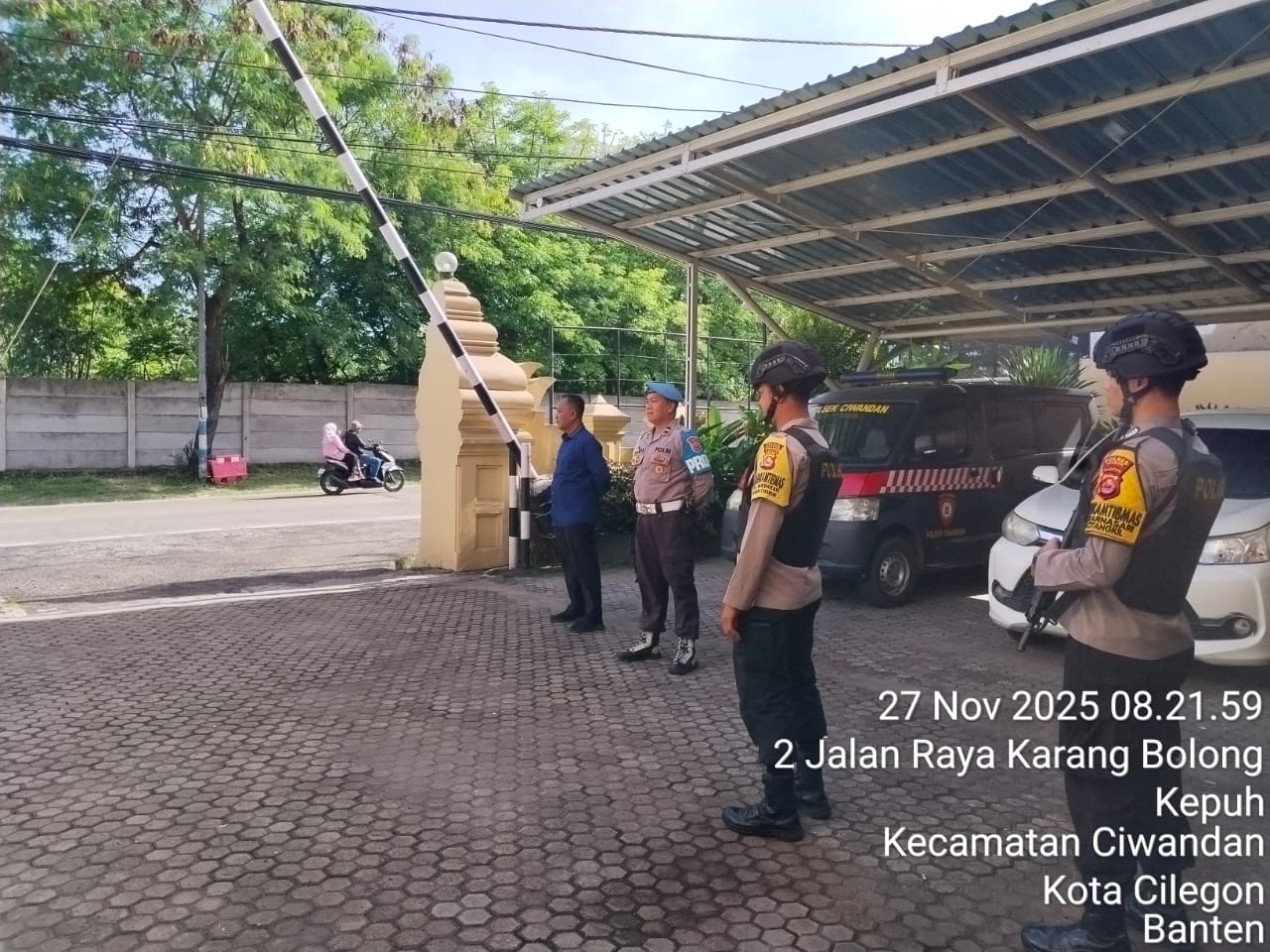 Cilegon - Guna mengantisipasi adanya potensi ancaman dan gangguan terhadap keamanan kantor maupun keselamatan personel piket jaga, Personil Polsek Ciwandan Polres Cilegon Polda Banten selalu tingkatkan kesiapsiagaan dan kewaspadaan dengan rutin menggelar kegiatan Sistem Pengamanan Mako (Sispam Mako), Sabtu (29/11/2025).
