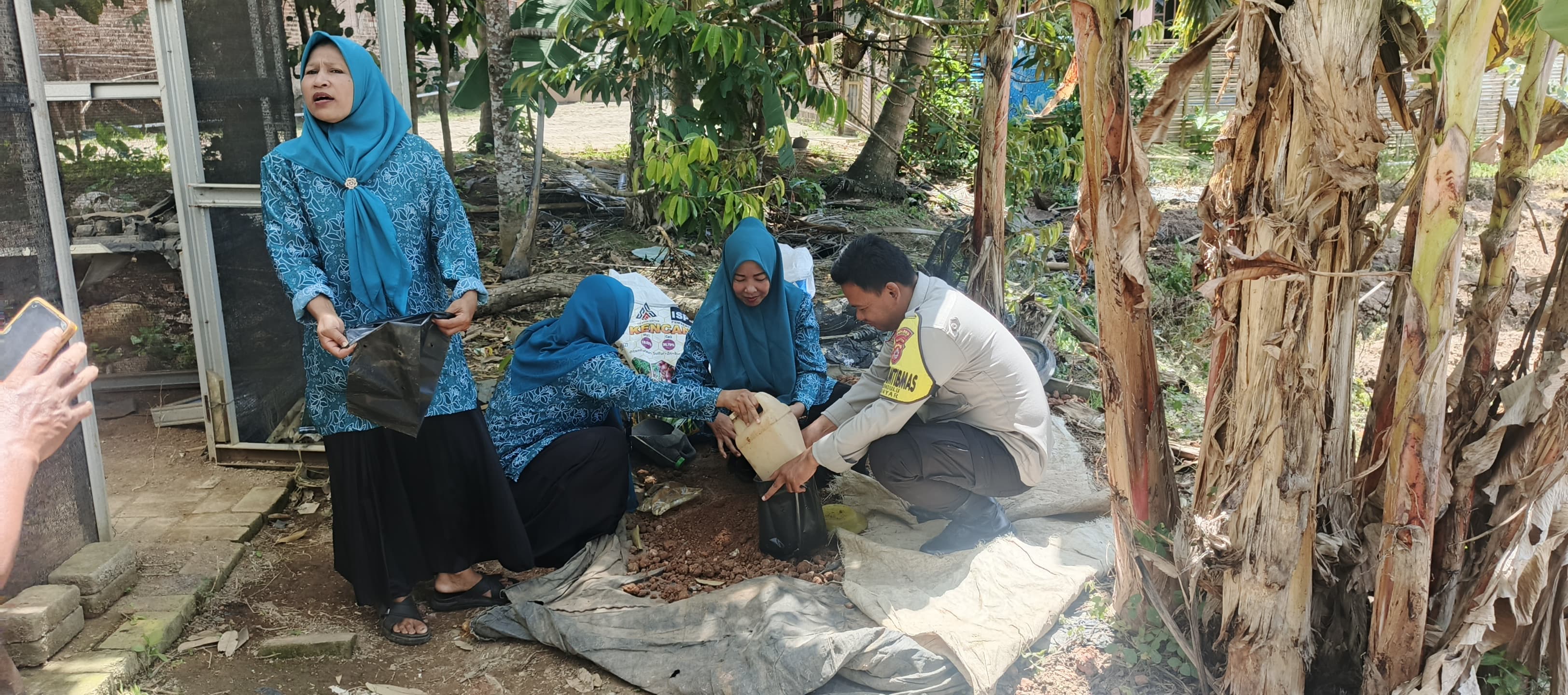 Bhabinkamtibmas Polsek Anyar Polres Cilegon Polda Banten Desa Bandulu menghadiri dan mengikuti kegiatan PKK Desa Bandulu dalam rangka pelaksanaan Program Pekarangan Pangan Lestari (P2L) yang dilaksanakan oleh Kelompok Wanita Tani (KWT) Desa Bandulu. Senin (01/12)