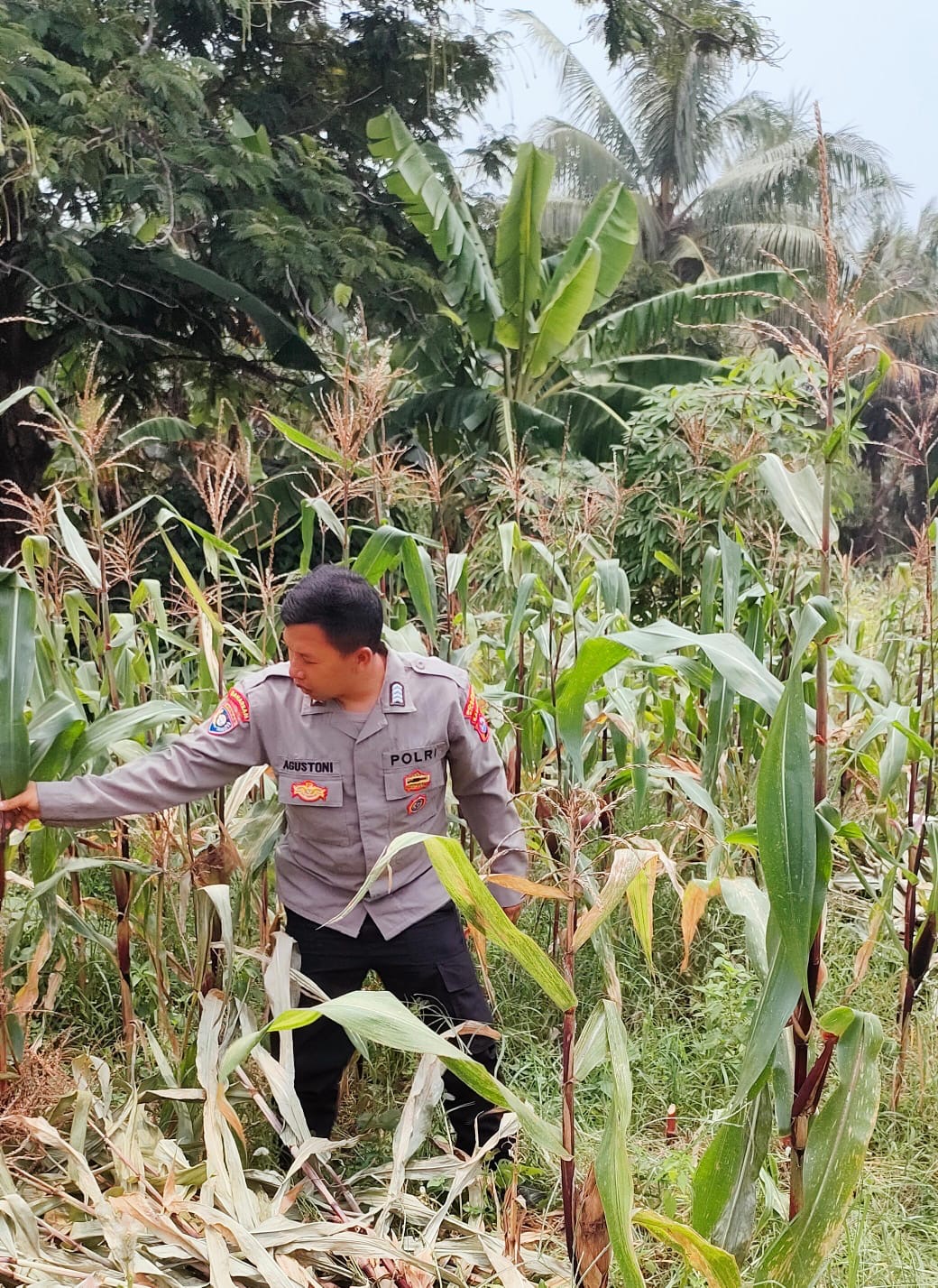 BHABINKAMTIBMAS BRIPKA AGUSTONICEK TANAMAN JAGUNG BERSAMA MASYARAKAT DI JL. PELLET KOMPLEKS KS KOTABUMI
