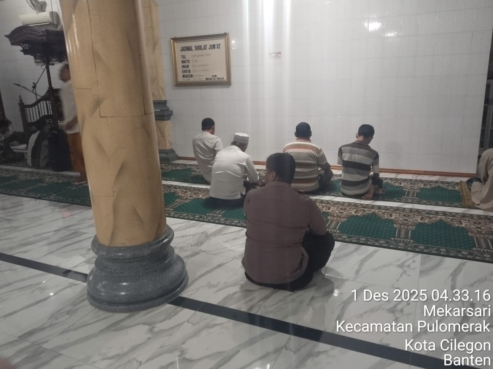 “Dalam kegiatan tersebut, Personil Polsek Kp Polres Cilegon Polda Banten turut berbaur dengan jemaah masjid dalam melaksanakan shalat subuh berjamaah. Setelah itu, dilakukan dialog interaktif antara petugas kepolisian dan masyarakat untuk mendengarkan aspirasi serta memperoleh masukan terkait dengan situasi keamanan dan ketertiban di lingkungan sekitar,” tambah Kapolsek.