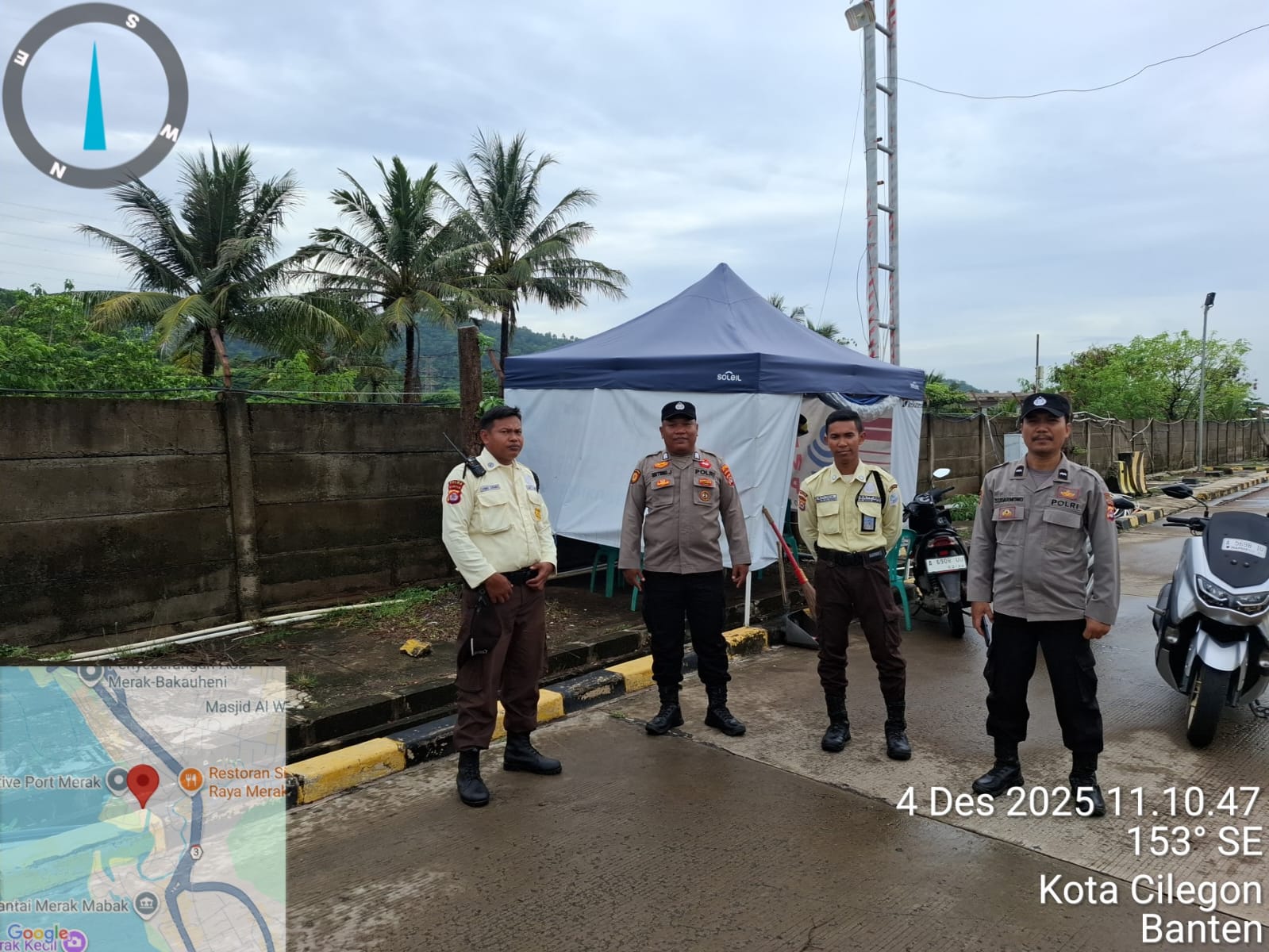 Cilegon - Personel Polsek Kskp Merak Polres Cilegon Polda Banten melaksanakan sambang dan patroli kawasan pelabuhan merak dalam rangka menjaga Harkamtibmas di Kawasan Pelabuhan Merak, Kamis (04/12/2025).