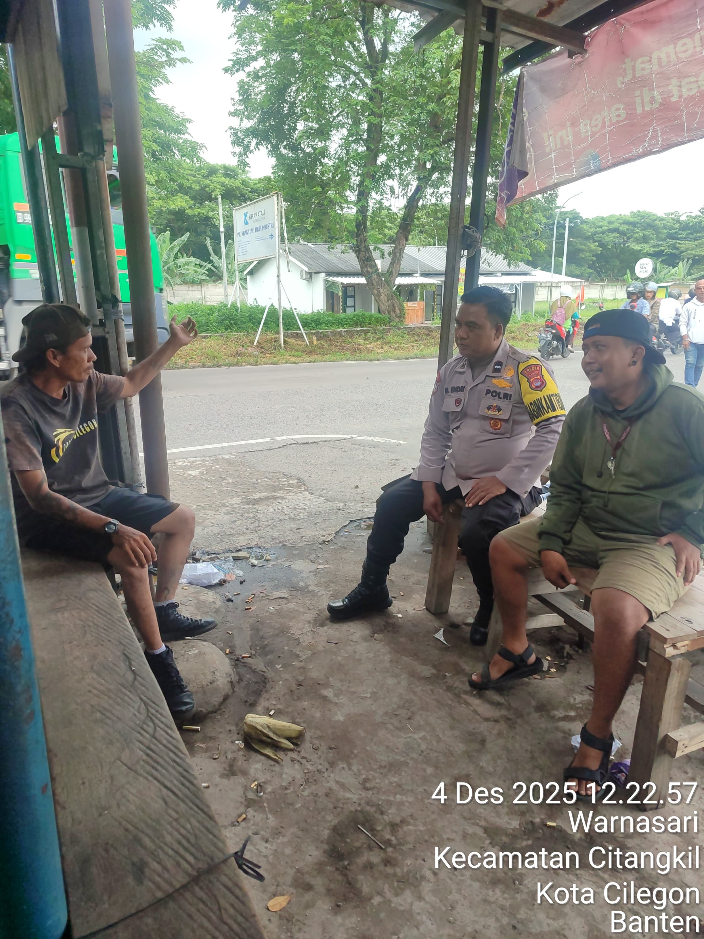Cilegon - Bhabinkamtibmas Polsek Ciwandan Polres Cilegon Polda Banten merupakan ujung tombak kepolisian yang bersentuhan langsung dengan masyarakat guna menciptakan situasi kamtibmas yang aman dan kondusif,Kamis (04/12/2025).