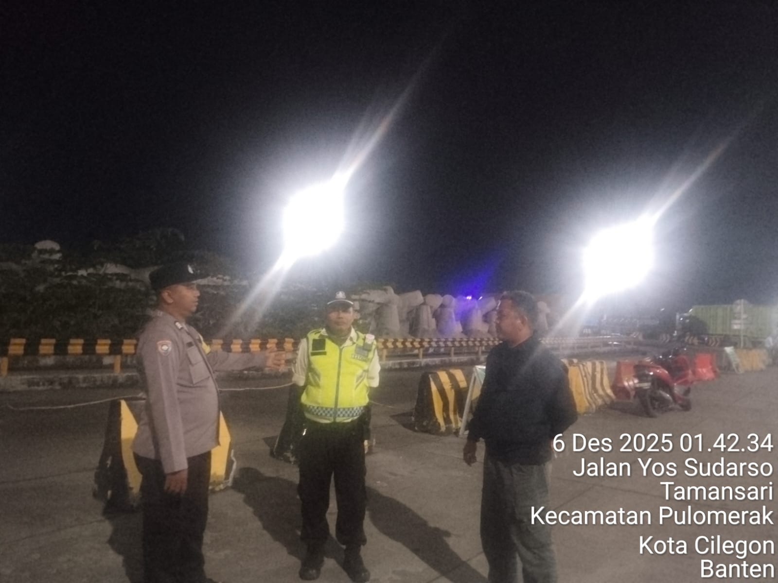 Cilegon - Personil Polsek Kskp Merak Polres Cilegon melaksanakan patroli di kawasan pelabuhan merak memberikan rasa aman dan damai, Sabtu (06/12/2025)