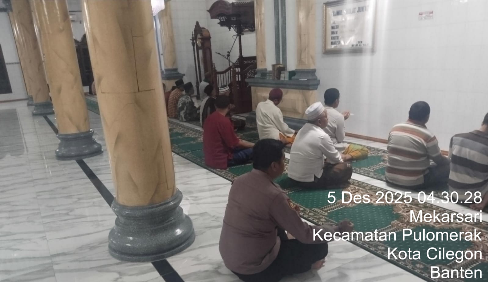 Cilegon – Personil Kskp Merak Polres Cilegon Polda Banten menggelar kegiatan Pembinaan Rohani dengan shalat subuh keliling di Masjid Yang ada Di Daerah hukum Polsek Kp Merak Polres Cilegon Polda Banten, Sabtu (06/12/2025).