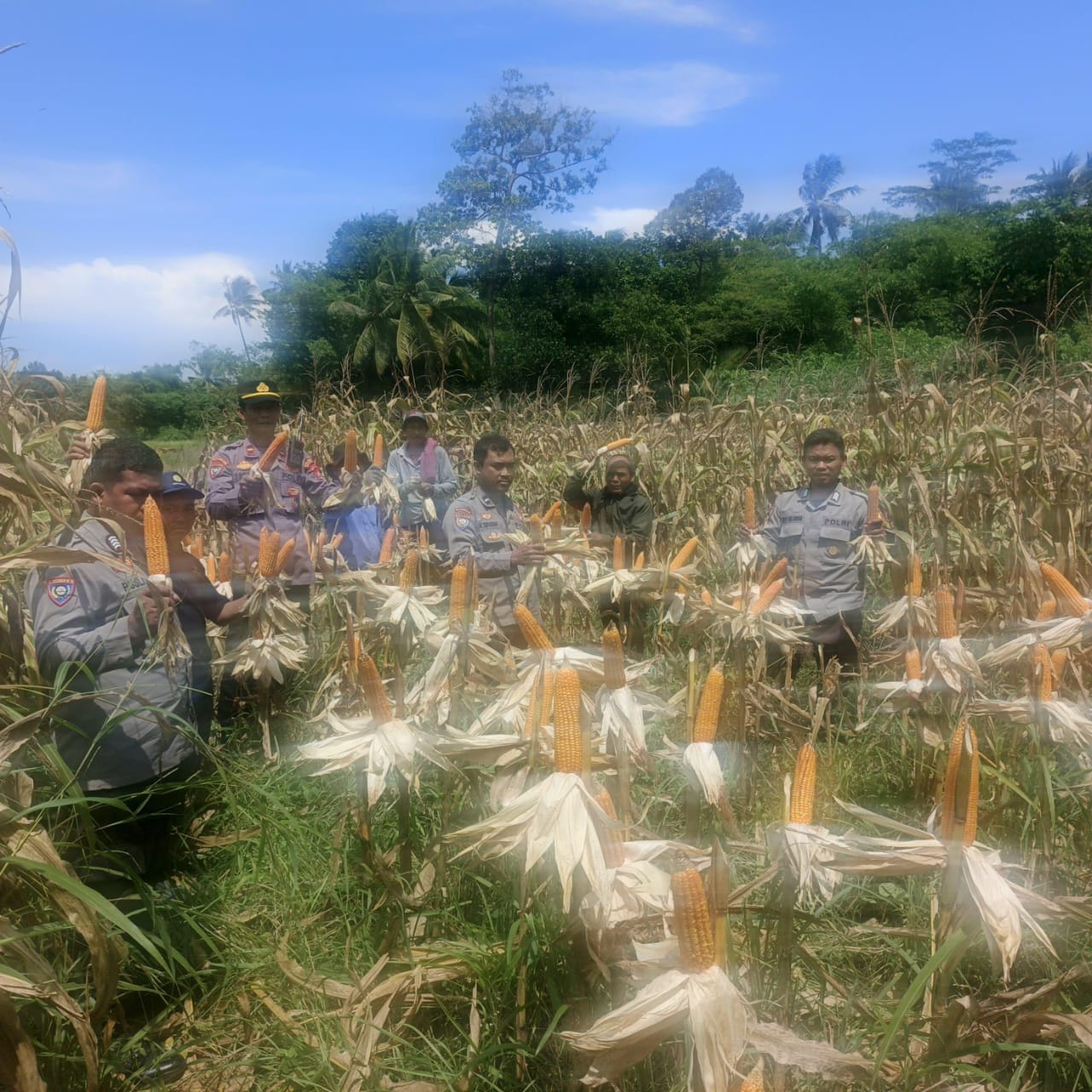 Dampingi Panen Jagung sebagai Bentuk Sinergitas Polsek Anyar dengan Petani