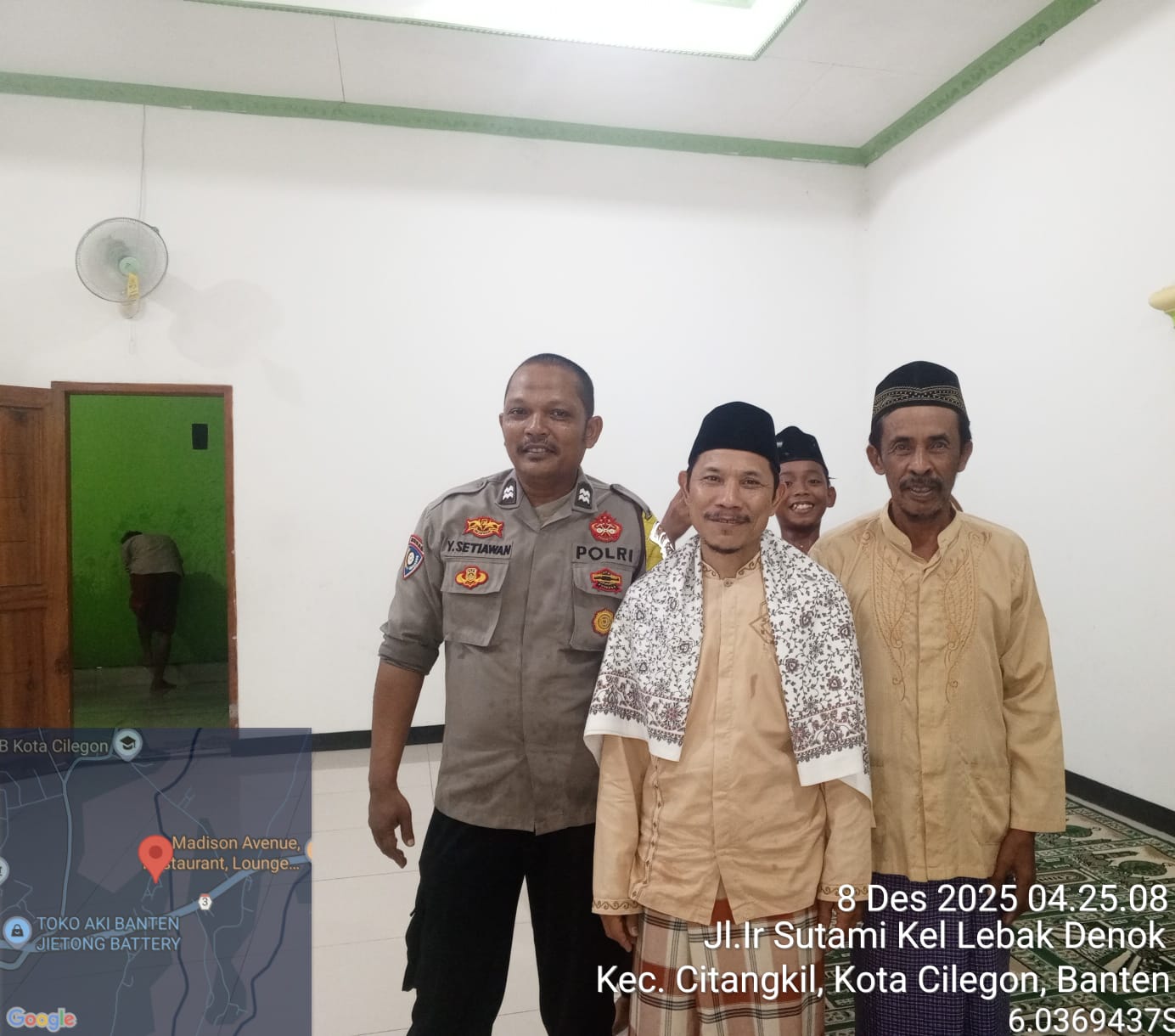 Cilegon – Bhabinkamtibmas Polsek Ciwandan Polres Cilegon Polda Banten menggelar kegiatan Pembinaan Rohani dengan Sholat subuh keliling di Masjid Yang ada Di Daerah hukum Polsek Ciwandan Polres Cilegon Polda Banten,Minggu (07/12/2025).