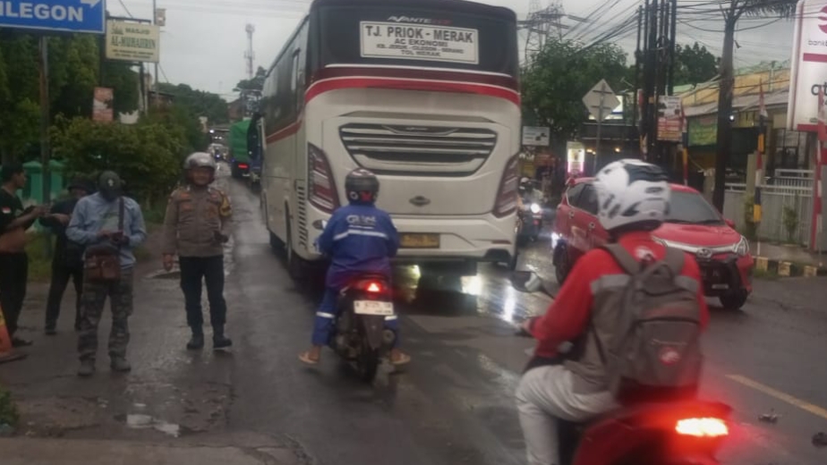 Meskipun saat hujan !!! Kanit Lantas Polsek Pulomerak Bantu atur lalin simpang Gerem