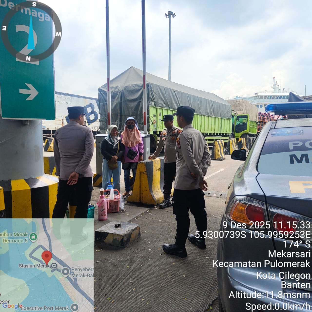 Cilegon - Personel Polsek Kskp Merak Polres Cilegon Polda Banten melaksanakan sambang dan patroli kawasan pelabuhan merak dalam rangka menjaga Harkamtibmas di Kawasan Pelabuhan Merak, Selasa (09/12/2025).