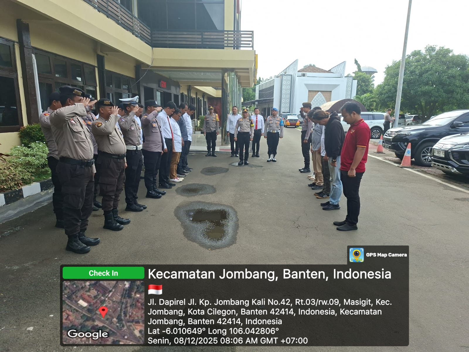 Cilegon, personel Satreskrim Polres Cilegon Polda Banten melaksanakan piket di penjagaan pintu masuk Polres Cilegon Polda Banten untuk memastikan mako Polres Cilegon dalam keadaan aman dan nyaman dalam melayani Masyarakat tanpa adanya gangguan kejahatan. Senin (08/12/2025).