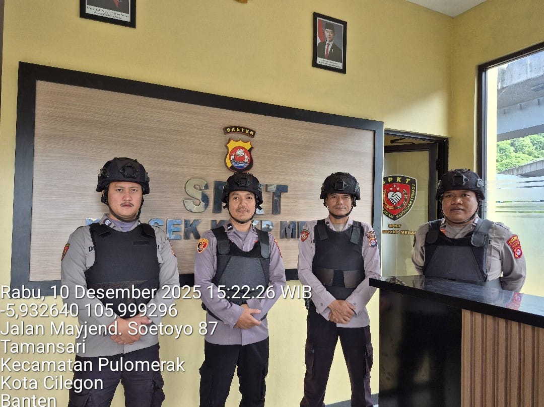 Cilegon - Personel piket jaga Polsek Kskp Merak Polres Cilgon Polda Banten melaksanakan siaga 1 Polsek pelaksanaan Sispam Mako oleh piket siaga dipimpin oleh Kspk Polsek Kskpy Merak Polres Cilegon Polda Banten, Rabu (10/12/2025).
