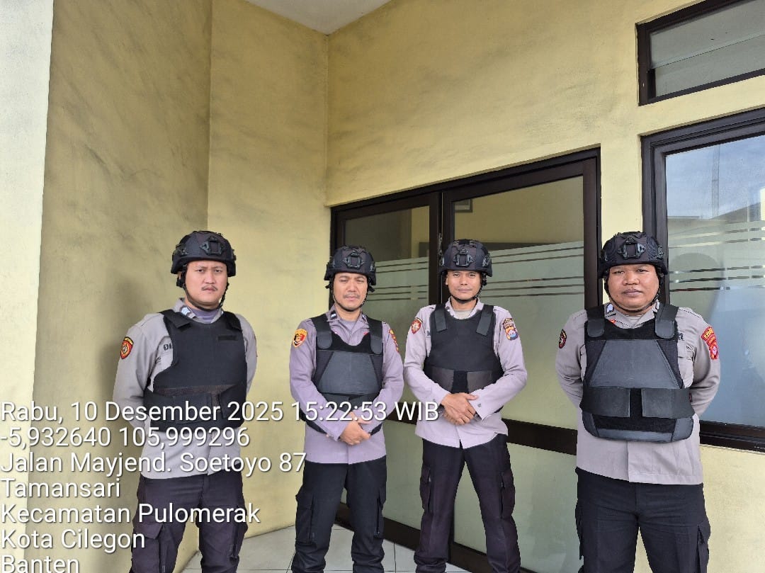 Cilegon - Personel piket jaga Polsek Kskp Merak Polres Cilgon Polda Banten melaksanakan siaga 1 Polsek pelaksanaan Sispam Mako oleh piket siaga dipimpin oleh Kspk Polsek Kskpy Merak Polres Cilegon Polda Banten, Rabu (10/12/2025).