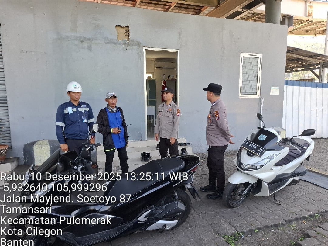Cilegon - Personel Polsek Kskp Merak Polres Cilegon Polda Banten melaksanakan sambang dan patroli kawasan pelabuhan merak dalam rangka menjaga Harkamtibmas di Kawasan Pelabuhan Merak, Rabu (10/12/2025).