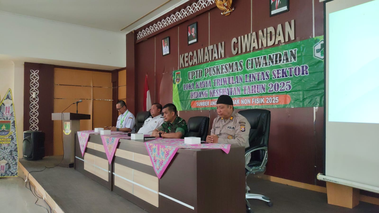 Cilegon - Wakapolsek Ciwandan Polres Cilegon Polda Banten AKP UUP M. Ma'ruf menghadiri kegiatan Lokakarya Mini Lintas Sektor Kesehatan UPTD Puskesmas Ciwandan Tahun 2025 Di Aula Kantor Kecamatan Ciwandan, Rabu (10/12/2025).