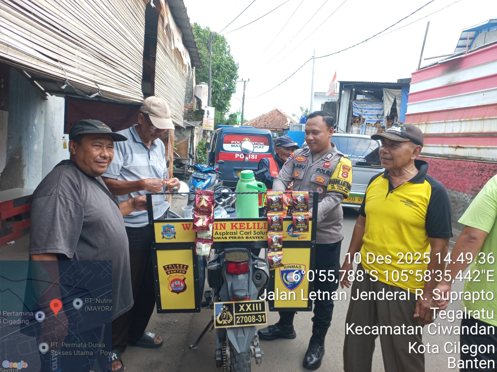 Cilegon - Bhabinkamtibmas Polsek Ciwandan Polres Cilegon Polda Banten, BRIGADIR Dede Abu melaksanakan kegiatan WARBIN (warung Blnhabinkamtibmas) di Lingkungan Binaan, Rabu (10/12/2025).