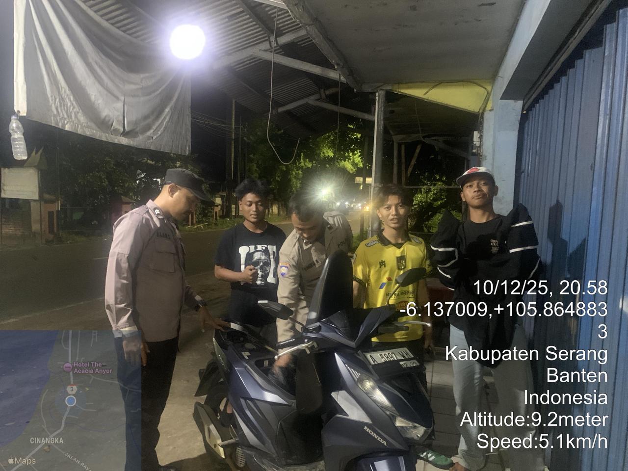*Polres Cilegon* – Dalam Rangka Pencegahan Kejahatan Jalanan dan Memelihara situasi keamanan dan menjaga serta memberikan rasa aman dan nyaman di masyarakat,Salah satu upaya untuk mewujudkan hal tersebut sebagaimana yang dilakukan oleh Personil Polsek Cinangka Polres Cilegon Polda Banten melaksanakan giat patroli blue light malam hari hingga menjelang pagi, Kamis (11/12/2025).