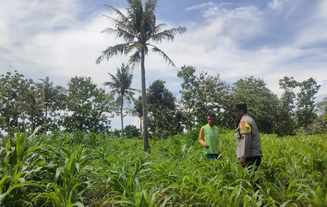 Bhabinkamtibmas Polsek Anyar Lakukan Cek Lahan Perkembangan Tanaman Jagung