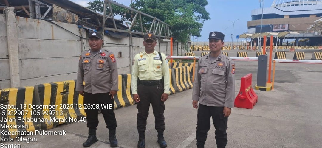 Cilegon - Personel Polsek Kskp Merak Polres Cilegon Polda Banten melaksanakan sambang dan patroli kawasan pelabuhan merak dalam rangka menjaga Harkamtibmas di Kawasan Pelabuhan Merak, Sabtu (13/12/2025).