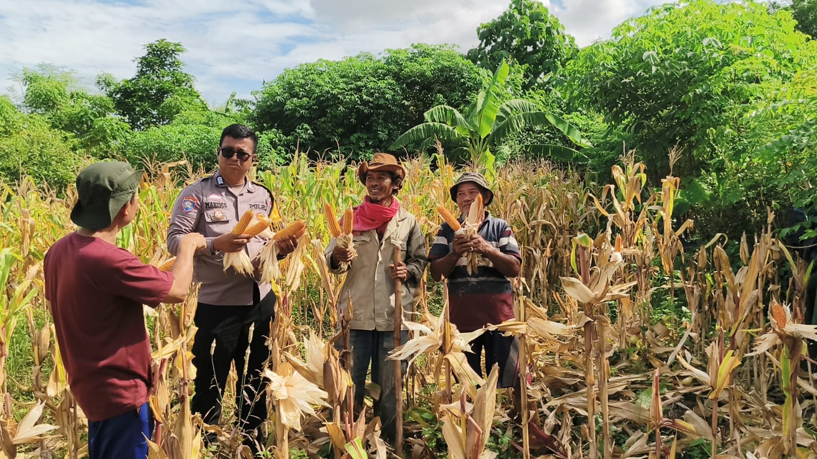Bhabinkamtibmas Hadiri Kegiatan Panen Jagung Kelompok Petani Binaan