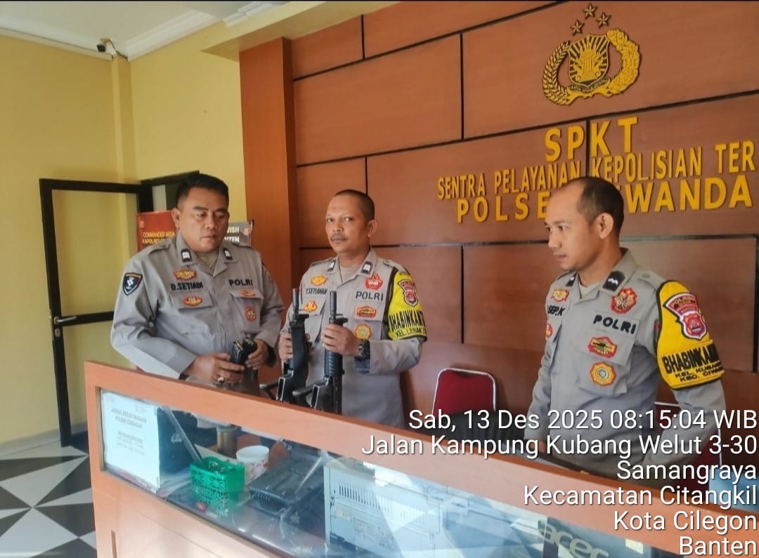 Cilegon - Sebelum melaksanakan tugas jaga Mako Personil Polsek Ciwandan Polres Cilegon Polda Banten Melaksanakan Serah Terima Tugas jaga dan Mengecek Kelengkapan barang-barang Inventaris, Sabtu (13/12/2025).