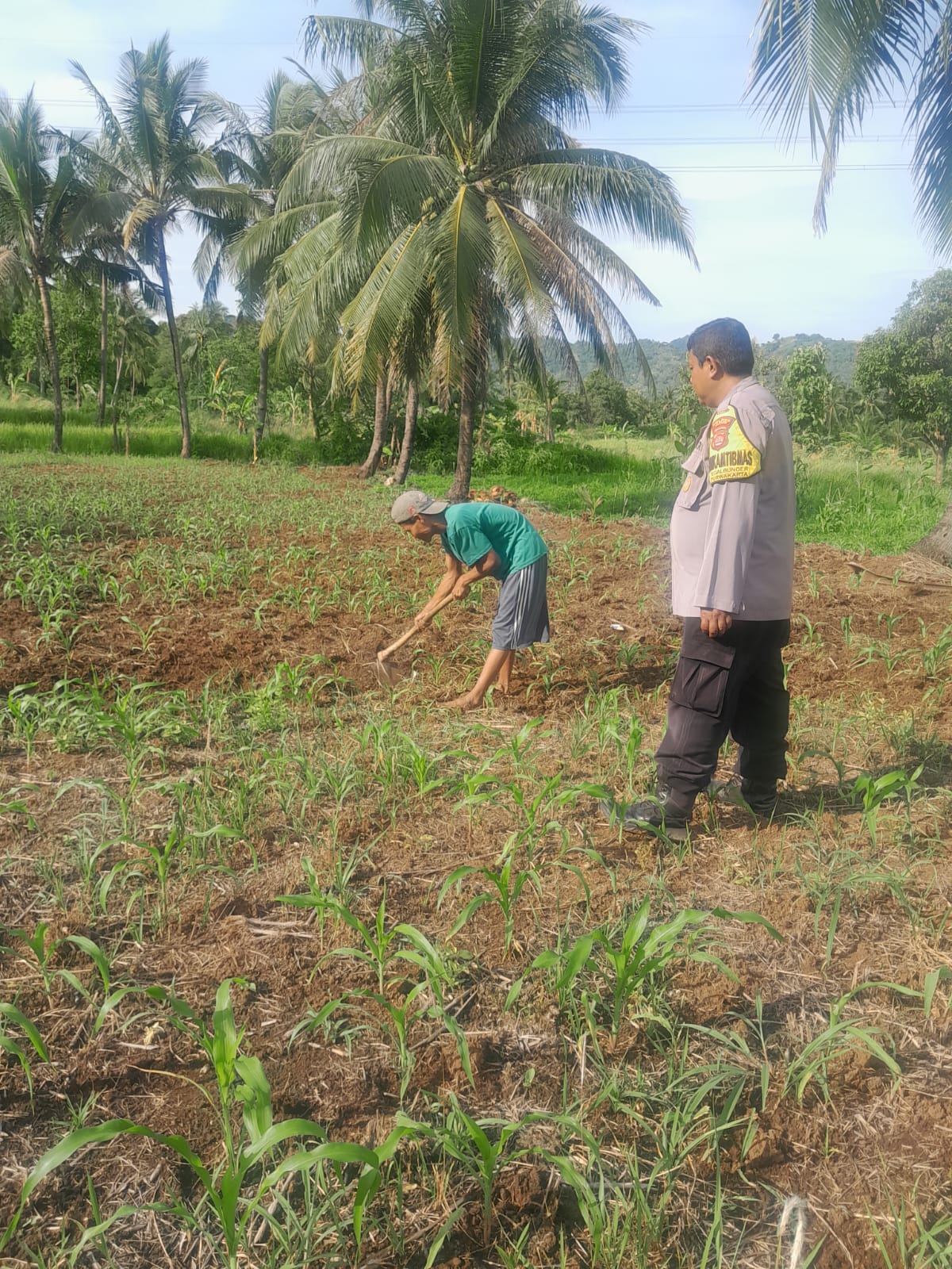 Selama kunjungan ke lahan petani, Aiptu Wawan tidak hanya memeriksa pertumbuhan tanaman dan potensi hama, tetapi juga berbagi pengetahuan tentang teknik budidaya yang lebih baik untuk meningkatkan hasil panen. Ia juga mendengar keluhan petani terkait akses sarana dan prasarana yang dibutuhkan dalam proses bertani.