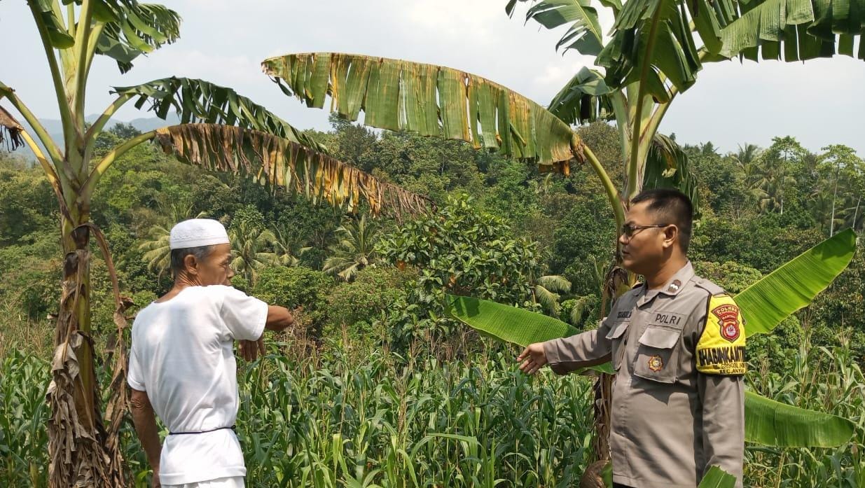 Bhabinkamtibmas Polsek Anyar Cek Pertumbuhan Pada Tanaman Jagung