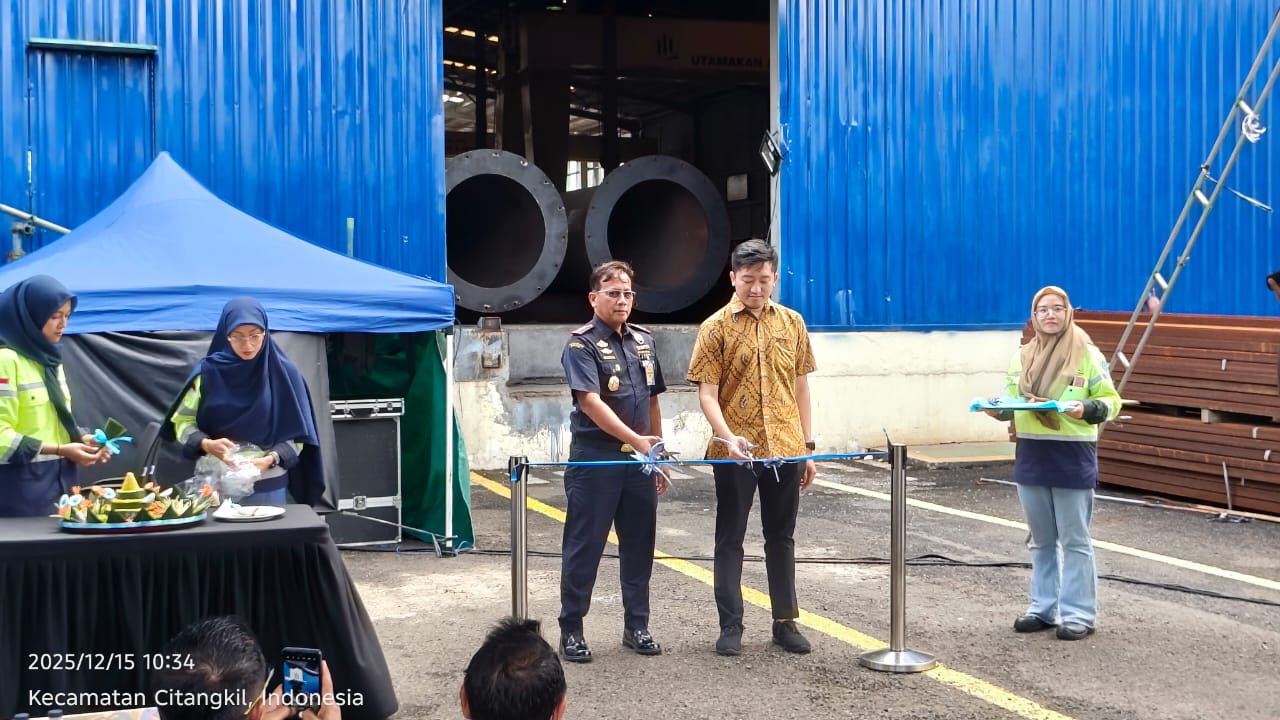 Cilegon - Kapolsek Ciwandan Kompol ANDI SUHERMAN, S.H., MM, beserta personil Polsek Ciwandan, menghadiri kegiatan Pelepasan Ekspor Baja Pape Struts Batch Ke-3 Tujuan Toronto, Negara Canada oleh PT. Trimitra Fabrikasi Engineering di Jl. Australia II Kav. N1 (KIK-1) Kel. Warnasari Kec. Citangkil Kota Cilegon, Senin (15/12/2025).