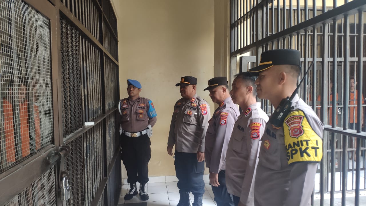 Pelaksanaan pengecekan ruangan tahanan Polres bersama piket Jaga tahanan mengecek secara keseluruhan kondisi ruang tahanan. Dalam pengecekan langsung kepada penghuni tahanan, menanyakan tentang kondisi dan keadaan para tahanan.